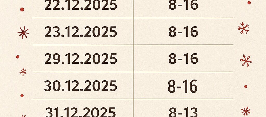 Tak przedstawia się harmonogram pracy filii Dworzec TO.Kultura oraz filii w Szymanowie w okresie świątecznym.