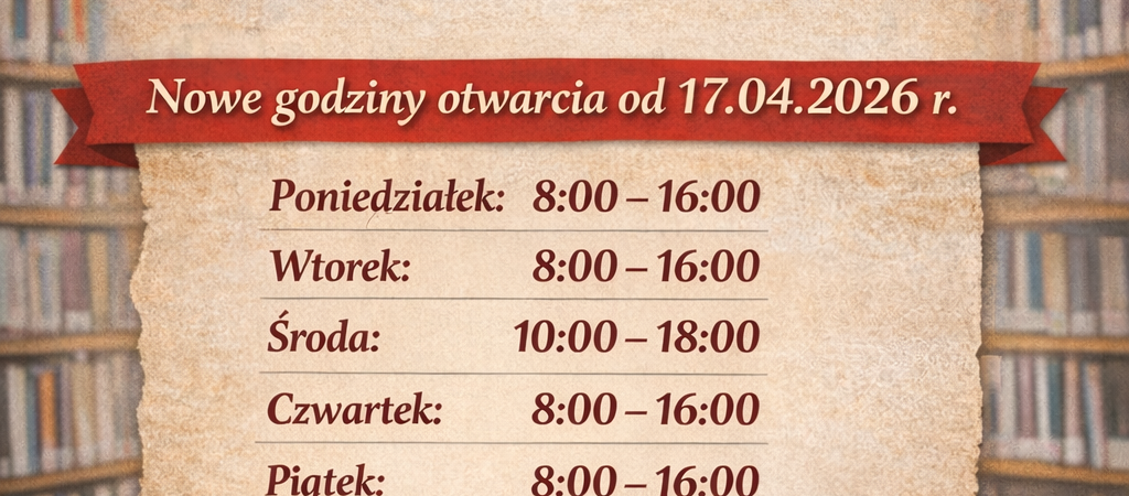 Szanowni Państwo, informuję, że w związku z organizacją czasu pracy oraz koniecznością zapewnienia ciągłości funkcjonowania Filii Bibliotecznej w Szymanowie, zmianie ulegają godziny pracy. Zmiana wynika z faktu, że obsadę Filii stanowią dwie osoby, które korzystają z przysługujących urlopów, co wymaga takiego dostosowania godzin pracy, aby Biblioteka mogła być dostępna dla […]
