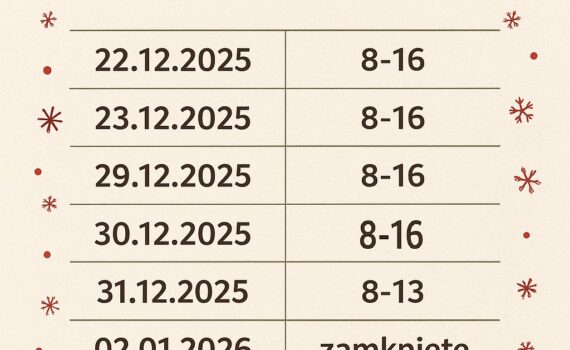 Tak przedstawia się harmonogram pracy filii Dworzec TO.Kultura oraz filii w Szymanowie w okresie świątecznym.