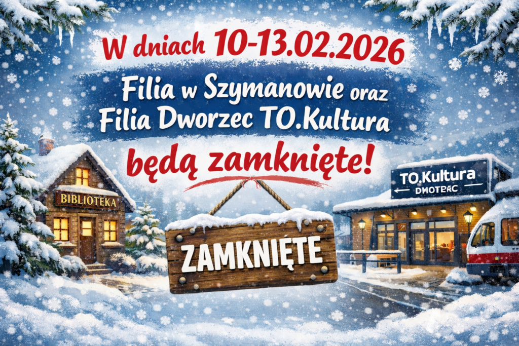 Aktualności Biblioteka Główna Filia Szymanów Filia TOKultura Przerwa techniczna w filiach Opublikowano 10-02-2026