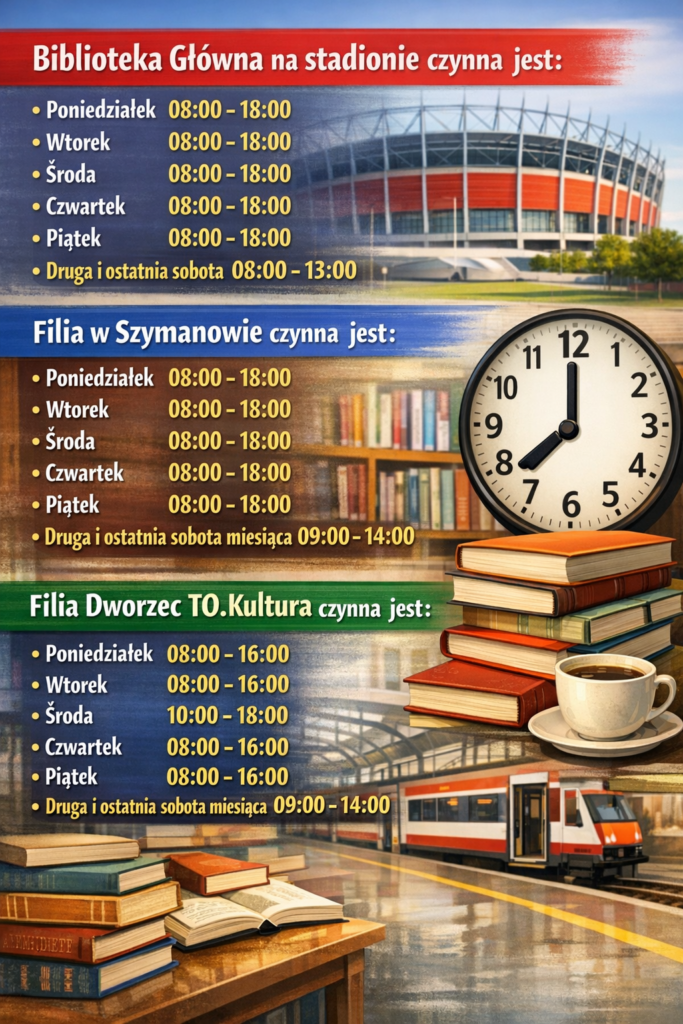 Zapraszamy do wszystkich naszych bibliotek — cieszymy się, że możemy być z Państwem! 📚✨