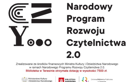 Miło mi poinformować, że Gminna Biblioteka Publiczna w Teresinie po raz kolejny otrzymała dotację na zakup nowości wydawniczych w wysokości 7500zł.