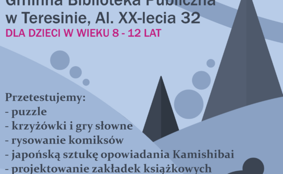 Zapraszamy na ferie zimowe w bibliotece! Serdecznie zapraszamy dzieci w wieku od 8 do 12 lat na wyjątkowe ferie w naszej bibliotece! 📚❄️ W programie:🎲 Gry i zabawy🤹 Kreatywne zajęcia📖 Ciekawostki i książkowe inspiracje Gwarantujemy świetną atmosferę i dużo dobrej zabawy! 📅 Terminy: 03.02.2025-07.02.2025📍 Miejsce: [Biblioteka główna- stadion Liczba miejsc […]
