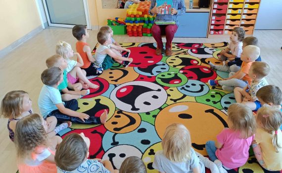 #tata też czyta i grupa Fasolki Przedszkole Niepubliczne Studio Dziecka Figiel słuchają pana Rafała i Grzegorza.