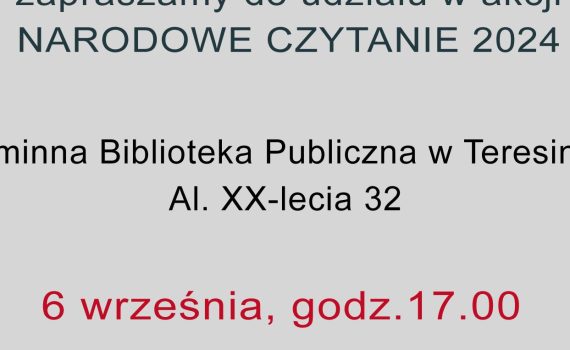 Drodzy Czytelnicy, Serdecznie zapraszamy na kolejną edycję Narodowego Czytania, które odbędzie się 6 września 2024 roku w naszej bibliotece! W tym roku wspólnie sięgniemy po wybitne dzieło literatury polskiej, które po raz kolejny zgromadzi nas wokół piękna słowa pisanego. Narodowe Czytanie to wyjątkowa okazja, by odkryć na nowo klasykę naszej […]